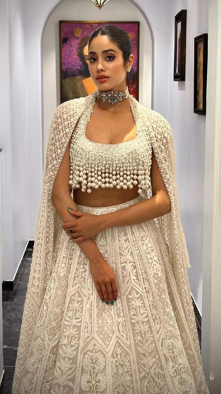 वेडिंग में एक्ट्रेस का व्हाइट फुल वर्क लहंगा पर्ल चोली लुक आपको अट्रैक्टिव लुक देगा। यदि आप कलरफुल पहनकर बोर हो गई हैं तो आप इसे जरूर ट्राई करें।