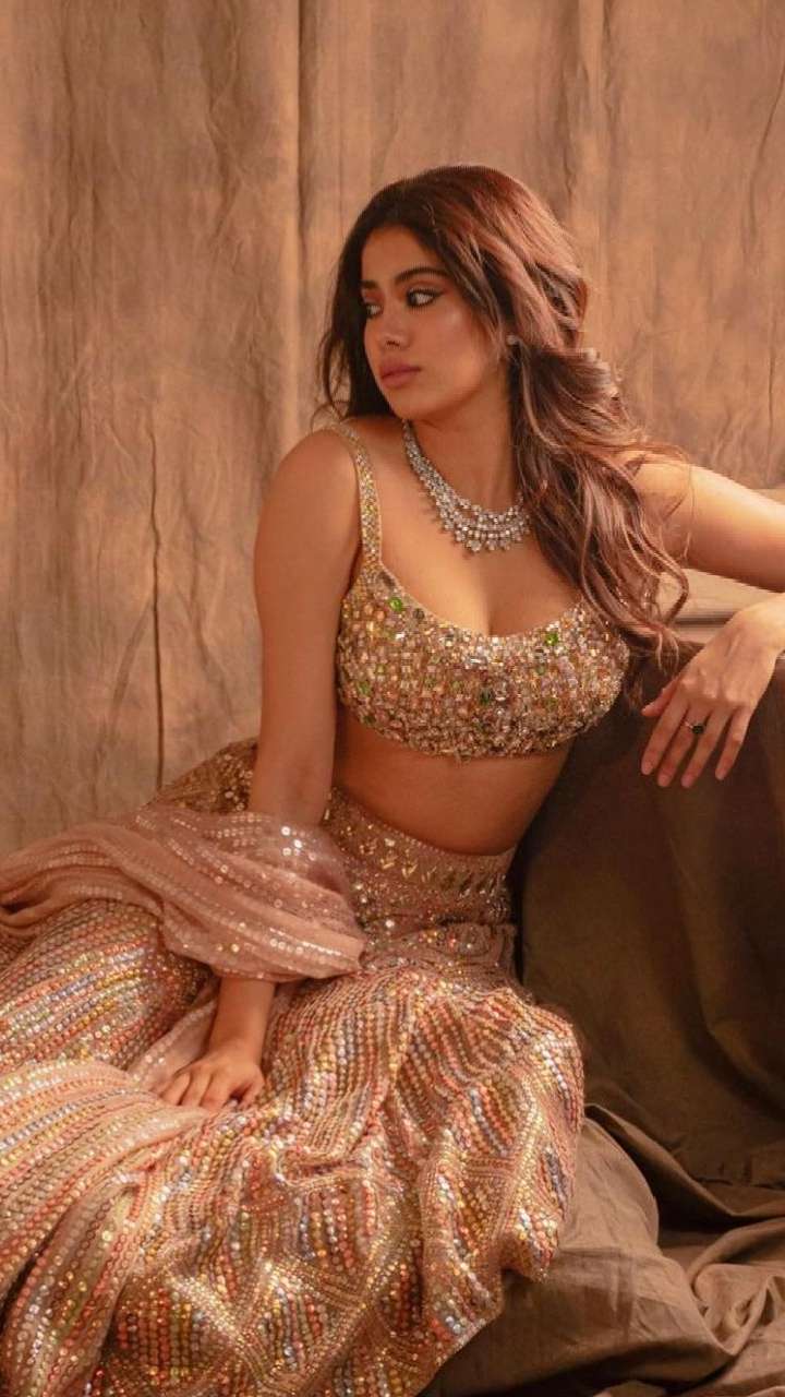 जाह्नवी कपूर का लहंगा कलेक्शन बेहद शानदार है। सिल्वर लहंगे में एक्ट्रेस हुस्न की मलिका लग रहीं हैं।