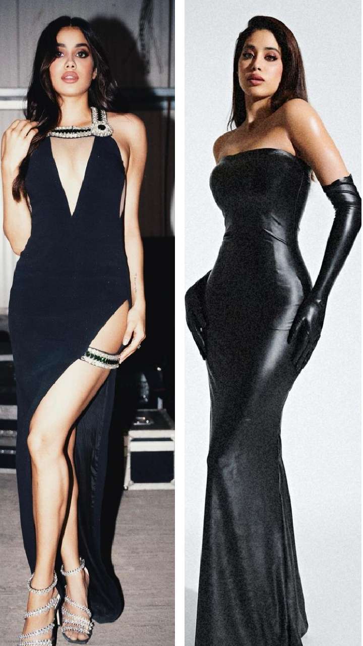 एक्ट्रेस अपने हर ब्लैक लुक में कहर ढाती हैं। जान्हवी अक्सर ब्लैक अटायर में अपने हुस्न के जलवे बिखेरती नजर आती हैं।