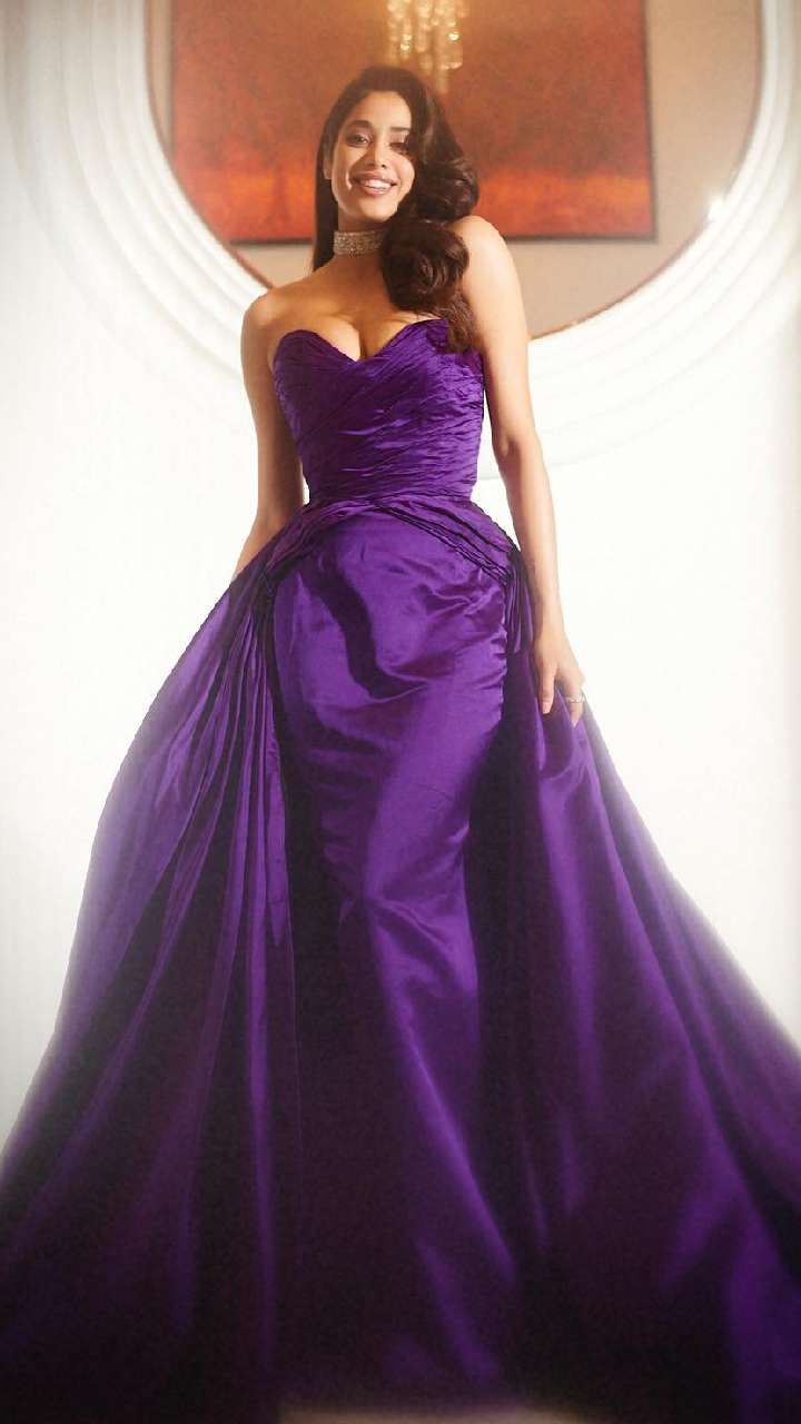 जान्हवी कपूर पर्पल ऑफ शोल्डर गाउन में बेहद गॉर्जियस नजर आ रही हैं। उन्होंने लुक को कंप्लीट करने के लिए नेकलेस पेयर किया है। आप भी ऐसे गाउन को स्टाइल करके शानदार लग सकती हैं।
