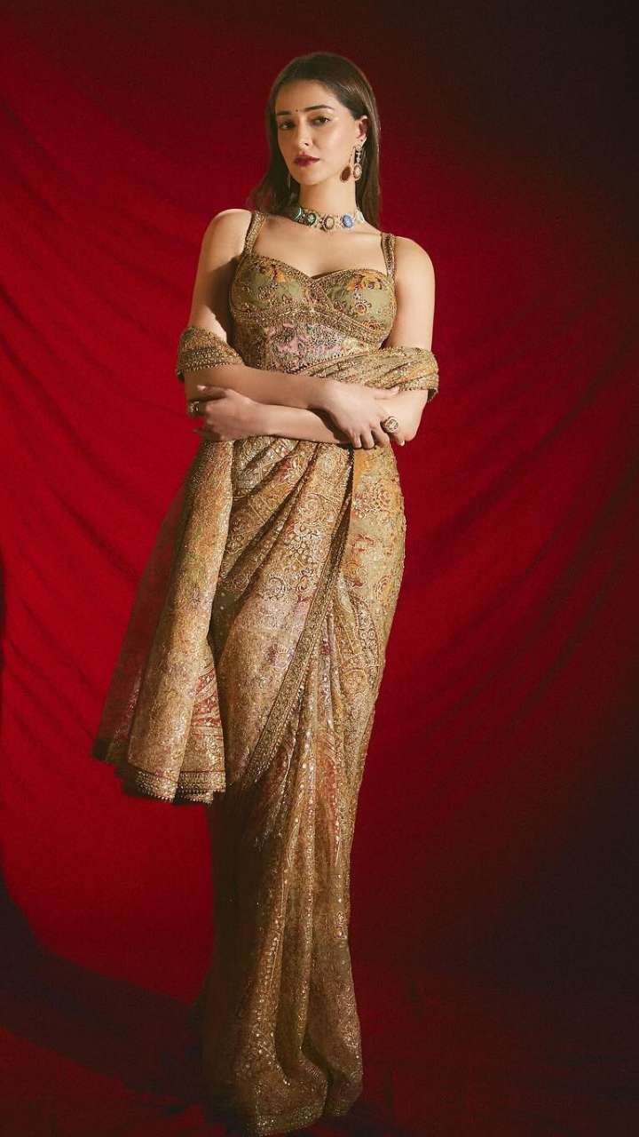 जाह्नवी कपूर के पास साड़ी का भी शानदार कलेक्शन है। एक्ट्रेस का ये टिश्यू साड़ी लुक काफी ज्यादा शानदार लग रहा है।
