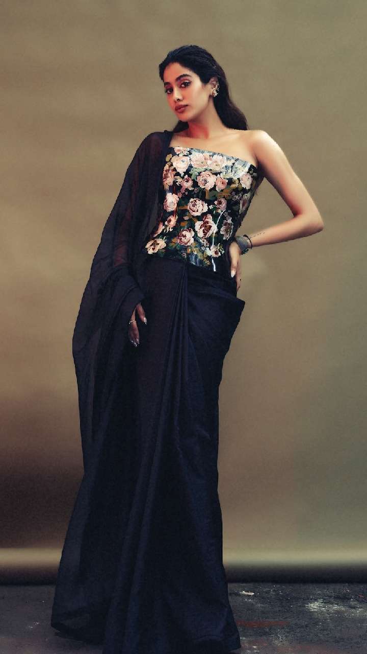 आप जाह्नवी कपूर के इस लुक को भी कॉपी कर सकती हैं। सीधे पल्ले की साड़ी आप भी किसी खास मौके पर पहन सकती हैं।