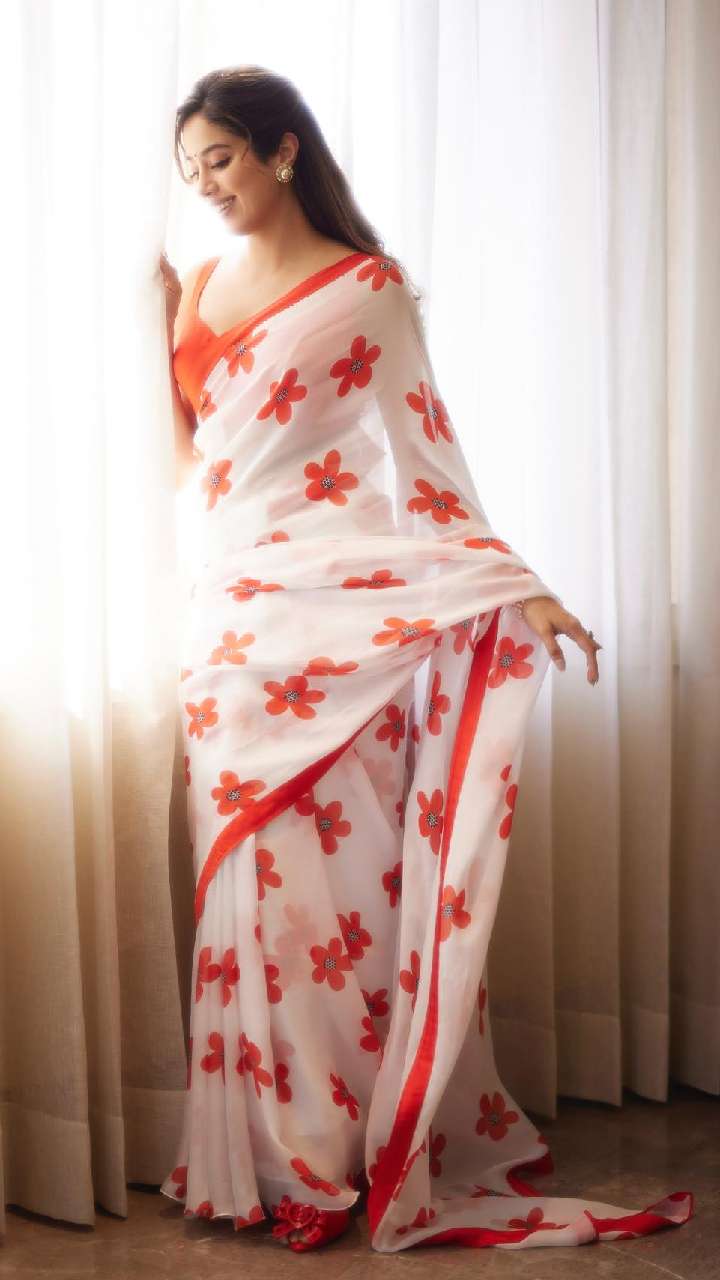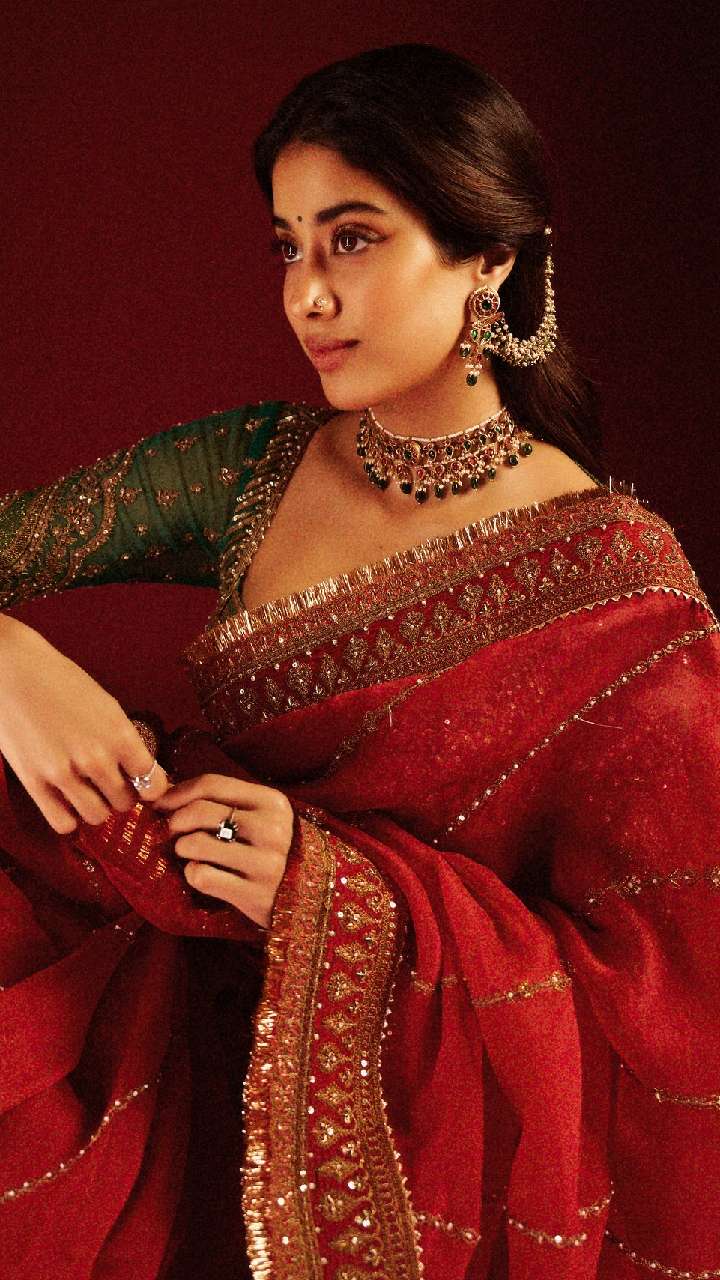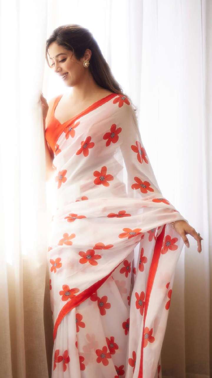 जाह्नवी कपूर के पास हर तरह के आउटफिट का शानदार कलेक्शन है। आज हम आपको उनके शानदार साड़ी लुक्स दिखाने जा रहे हैं।