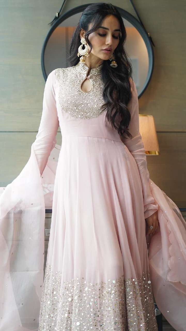 मिरर वर्क आउटफिट भी फिलहाल काफी ज्यादा ट्रेंड में चल रहे हैं। आप भी पिंक कलर के मिरर वर्क सूट को पहन सकती हैं।