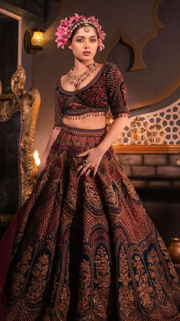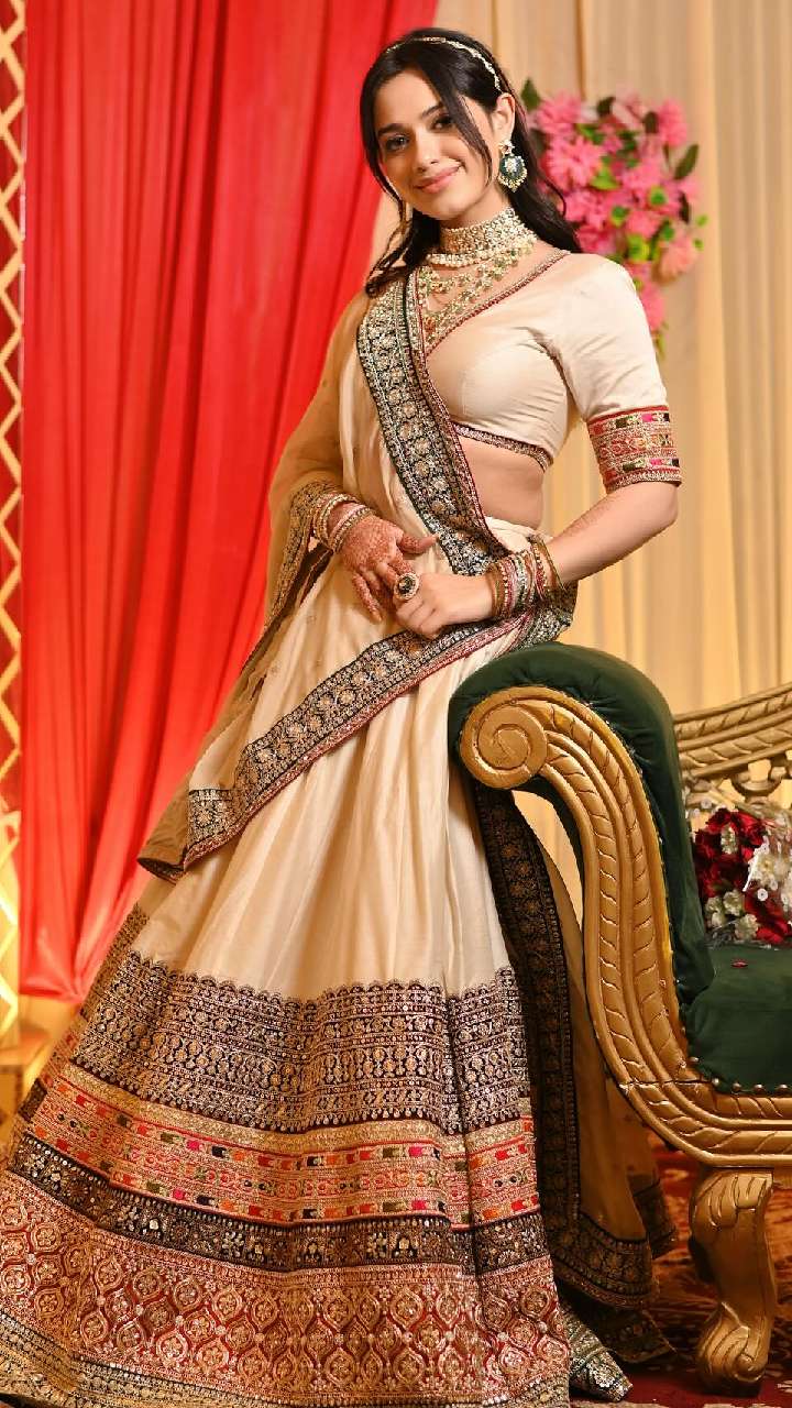 जन्नत ने लहंगा के साथ जरी वर्क ब्लाउज पहना है। आप भी ऐसे डिजाइन को कॉपी करके लहंगा या साड़ी के साथ ट्राई करें।