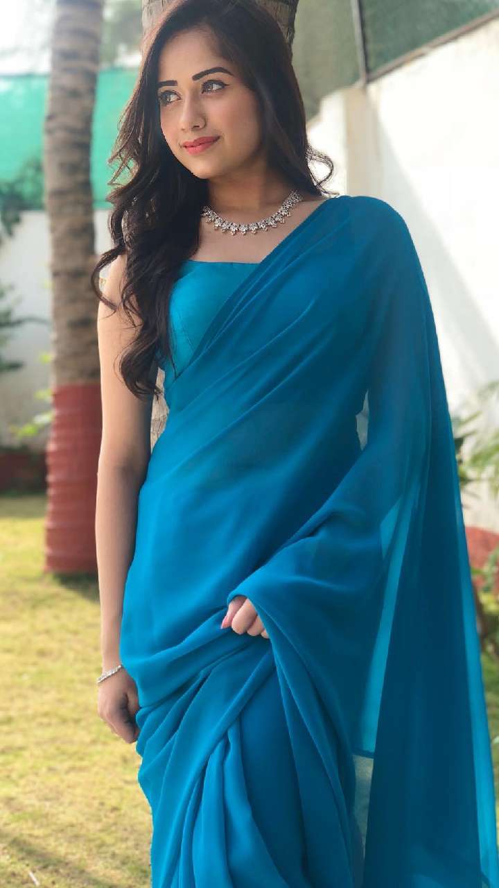टीनएज गर्ल्स प्लेन साड़ियों की बेहद शौकीन होती है। ऐसे में जन्नत का ये ब्लू प्लेन साड़ी लुक बेस्ट है।