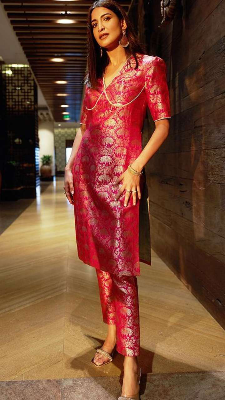 अभिनेत्री की ग्रे इंडो-वेस्टर्न ड्रेस कुंदन चोकर नेकपीस ओपन हेयर लुक काफी खूबसूरत लग रहा है। ये लुक आप वेडिंग के किसी भी फंक्शन में कैरी कर सकती हैं।