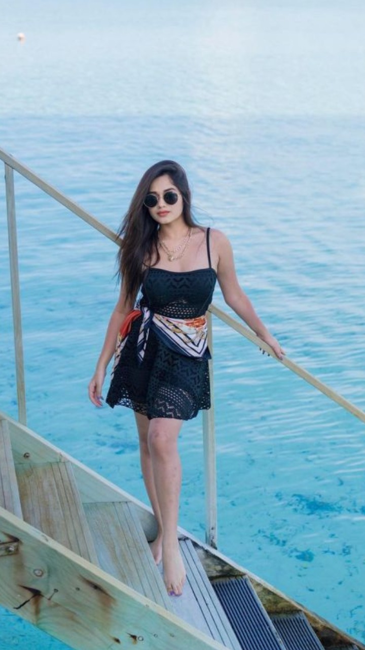जन्नत जुबैर इस शार्ट ब्लैक ऑफ़ शोल्डर ड्रेस में बेहद गॉर्जियस दिख रही हैं।