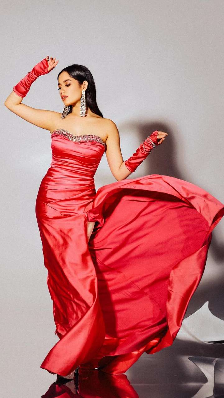 रेड कलर की स्ट्रैपलेस गाउन में जन्नत जुबैर बहुत हॉट लग रही हैं। बर्थ-डे पार्टी की शान बनने के लिए आप इस तरह की गाउन कैरी कर सकती हैं।