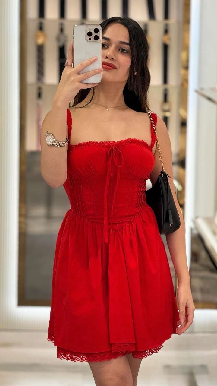 अगर आप शॉर्ट ड्रेस कैरी करना पसंद करती हैं तो आप जन्नत जुबैर की तरह ही शिमरी शॉर्ट ड्रेस कैरी कर सकती हैं।