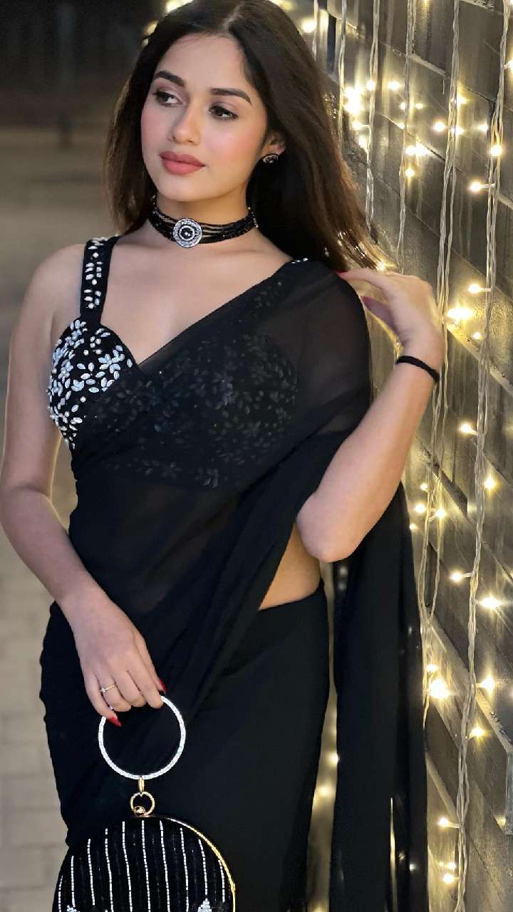 अगर आप ब्लैक लवर हैं तो आपको जन्नत जुबैर का ये साड़ी लुक काफी ज्यादा पसंद आएगा। ब्लैक साड़ी में एक्ट्रेस का लुक बहुत हॉट लग रहा है।