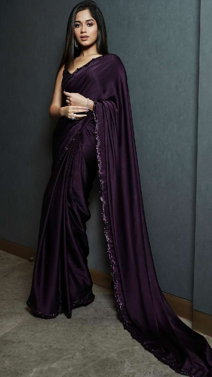 आप इस तरह की साटन साड़ी को भी कैरी कर सकती हैं। इस तरह के साड़ी लुक आप किसी भी खास मौके पर कैरी कर सकती हैं।