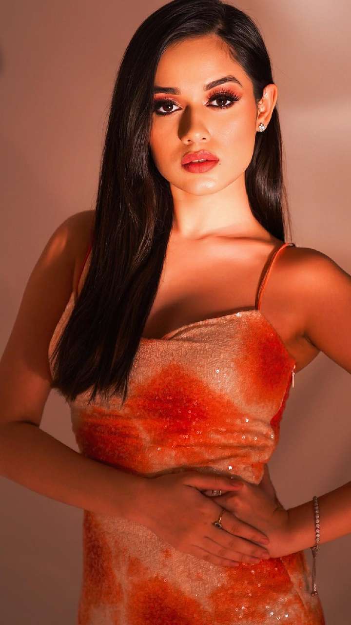 जन्नत ने हाल में पीच कलर की सेक्विन डीपनैक ड्रेस में अपना बेहद गॉर्जियस लुक शेयर किया है।