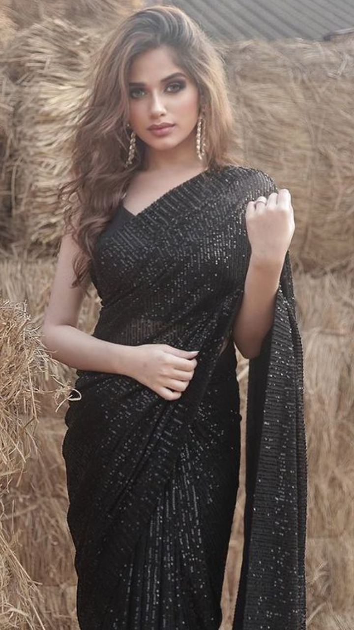 जनन्त जुबैर ब्लैक शिमरी साड़ी में बेहद खूबसूरत लग रही हैं।