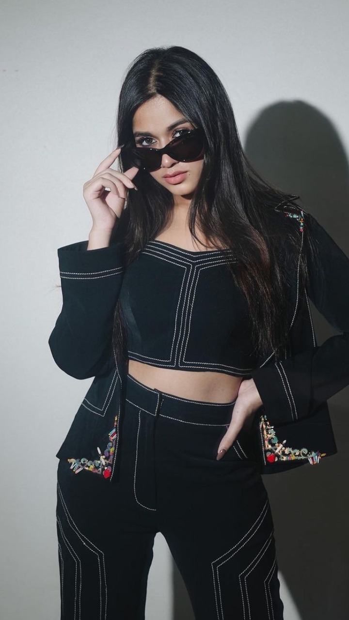 तस्वीर में ब्लैक आउटफिट में जन्नत कयामत ढहाती नजर आ रही हैं।