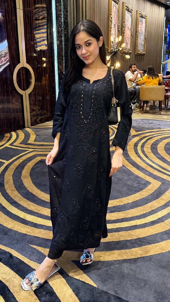 जन्नत जुबैर का ये ब्लैक सूट भी काफी ज्यादा शानदार लग रहा है। ब्लैक शिमरी सूट में एक्ट्रेस का ये लुक ऑफिस के लिए परफेक्ट है।