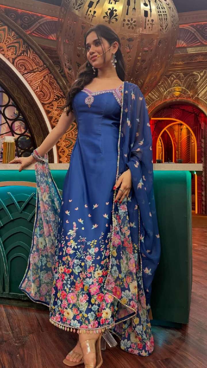 आप जन्नत जुबैर की तरह ही फ्लावर प्रिंटेड सूट स्टाइल कर सकती हैं। ब्लू कलर का सूट काफी ज्यादा शानदार लग रहा है।