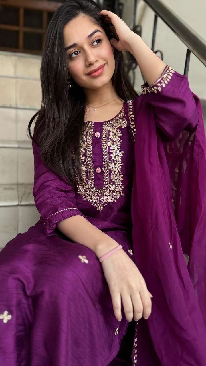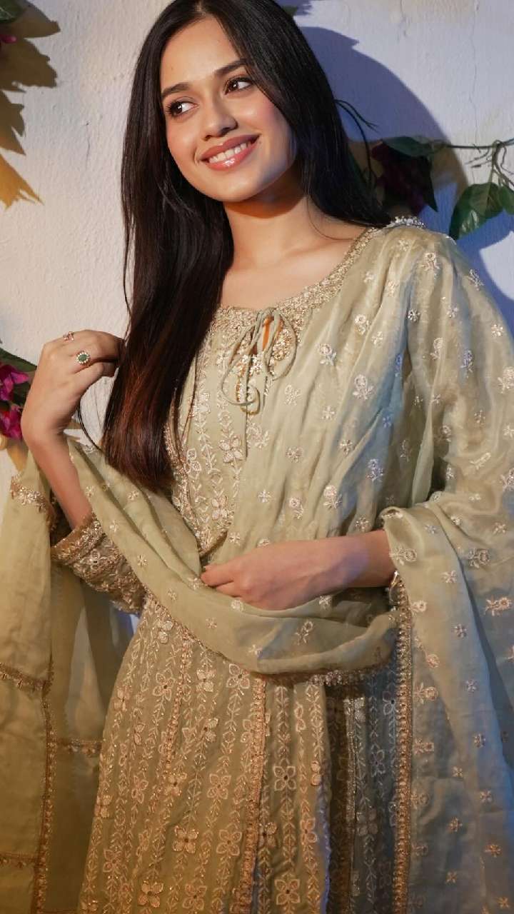 अपने लुक को अट्रैक्टिव बनाने के लिए आप जन्नत जुबैर की तरह ही एम्ब्रॉयडरी वर्क सूट डिजाइन स्टाइल कर सकती हैं।