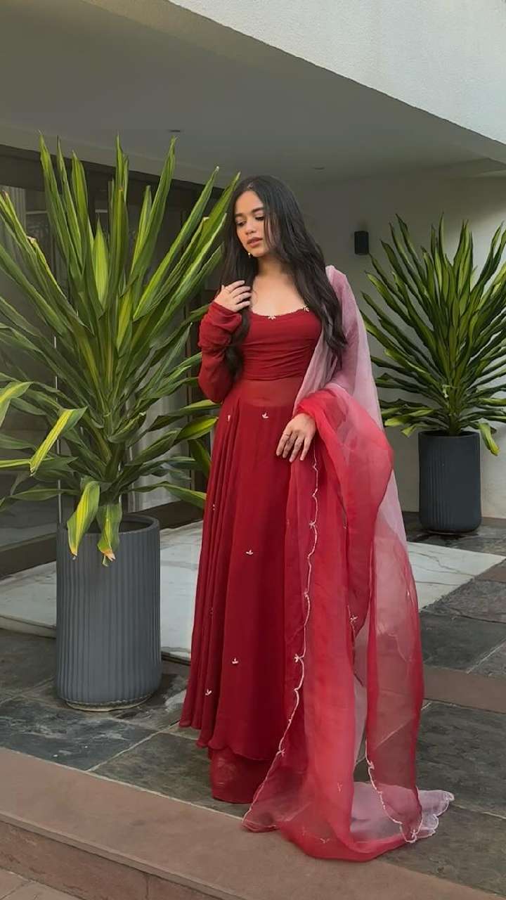जन्नत जुबैर सोशल मीडिया पर काफी एक्टिव रहती हैं। हाल ही में एक्ट्रेस ने रेड कलर के सूट में अपना लेटेस्ट लुक शेयर किया।