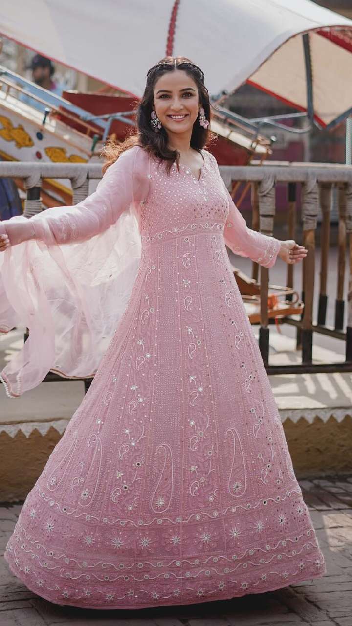 जैस्मिन इस लाइट पिंक कलर के मिरर वर्क सूट में अपने ब्यूटीफुल लुक से फैंस के दिलों को घायल कर रही हैं।