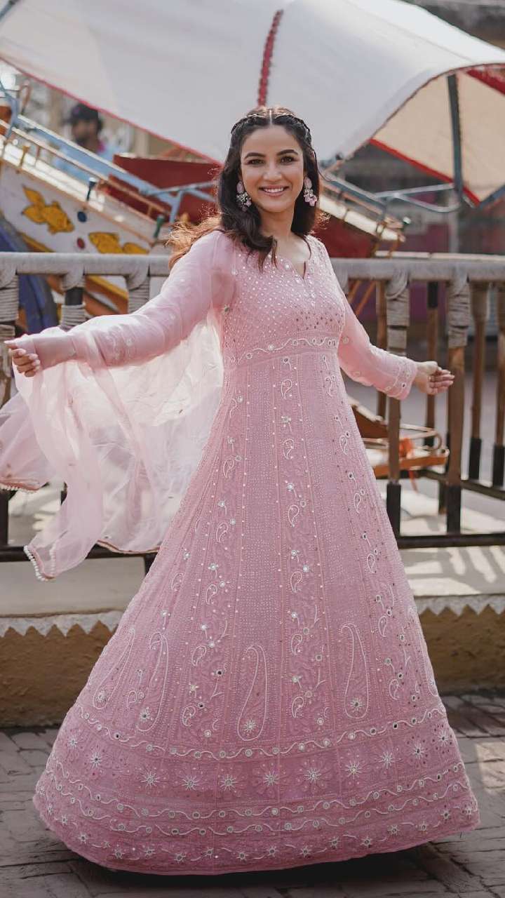 पिंक कलर के अनारकली सूट में जैस्मिन भसीन काफी ज्यादा प्यारी लग रहीं हैं। जैस्मिन भसीन का ये लुक काफी ज्यादा प्यारी है।
