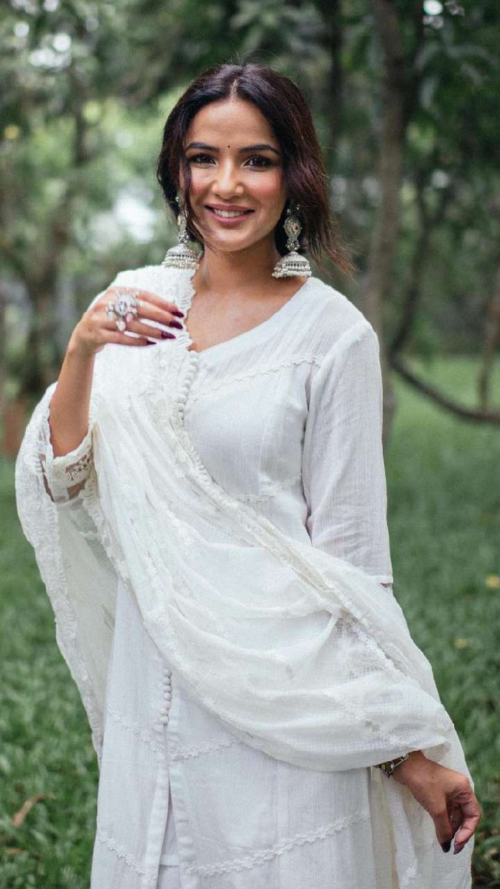 व्हाइट कलर के इस सूट में जैस्मिन भसीन का लुक काफी ज्यादा शानदार लग रहा है। पटियाला सूट आप भी कैरी कर सकती हैं।