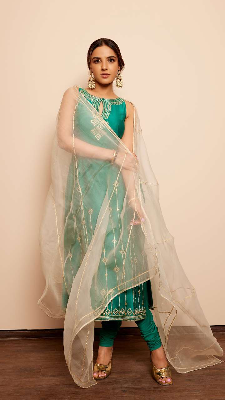 आप जैस्मिन भसीन की तरह ही अनारकली सूट को स्टाइल कर सकती हैं। एक्ट्रेस ने हाल ही में अपना ये सूट लुक शेयर किया है।