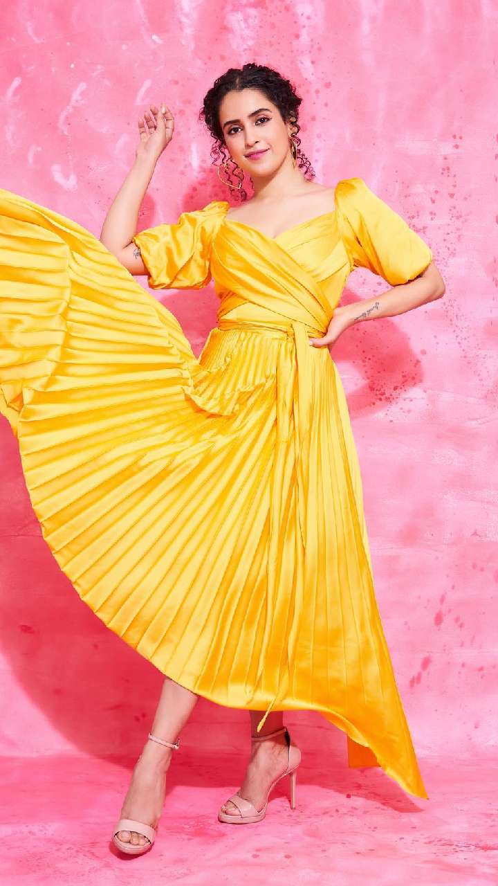 अभिनेत्री का येलो साटन शार्ट ड्रेस लुक बेहद ग्लैमरस है। आप भी इस लुक को रीक्रिएट करके सान्या की तरह प्रिटी लग सकती हैं।