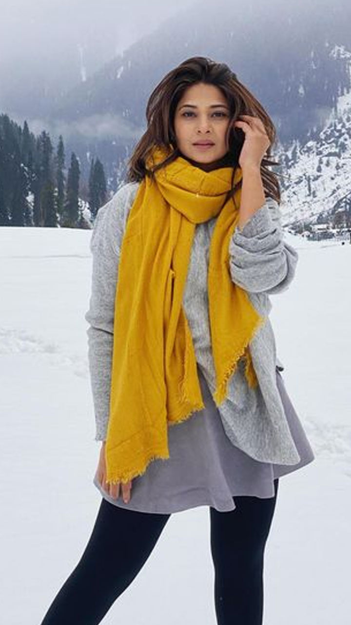 इस तस्वीर में जेनिफर बर्फ से ढकी हसी वादियों में पोज देती दिख रही हैं।