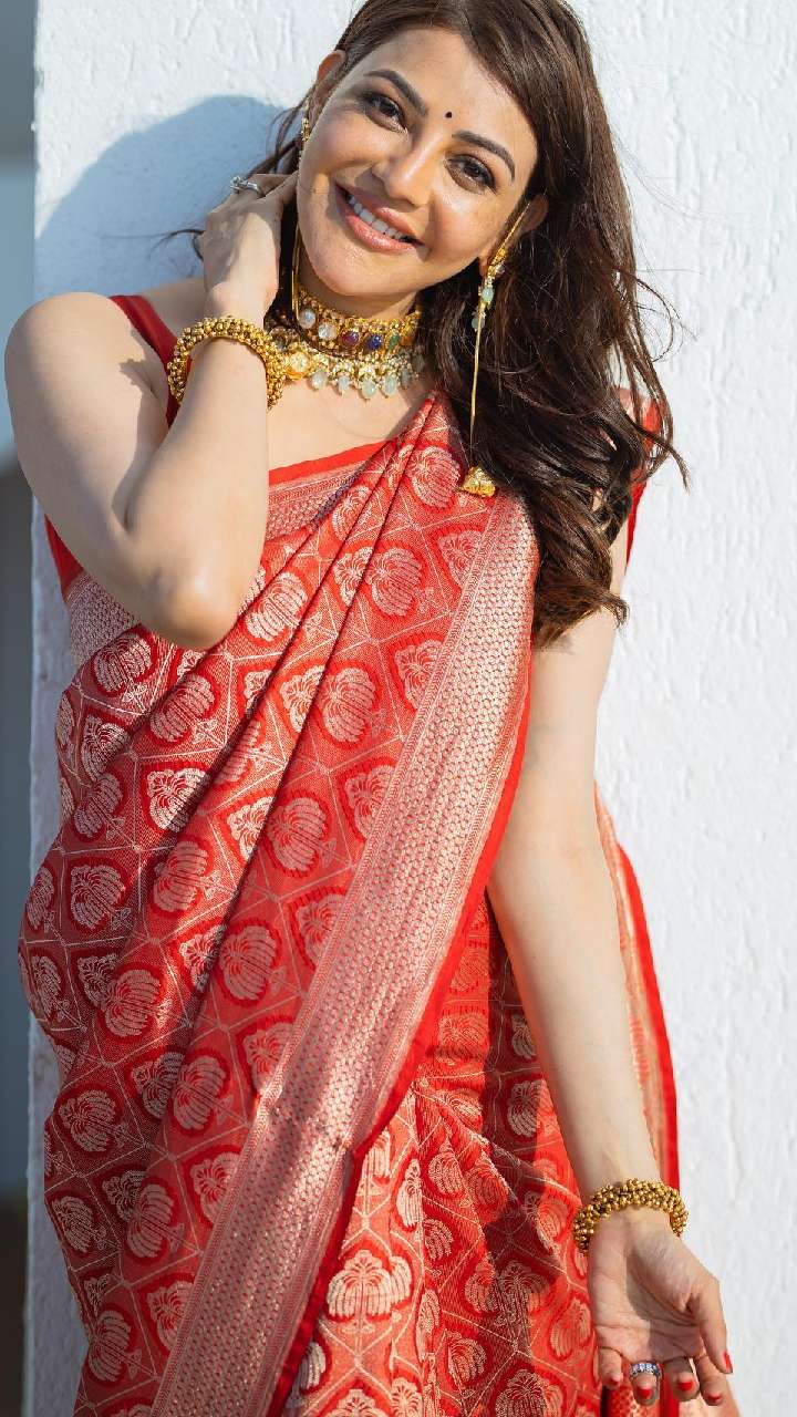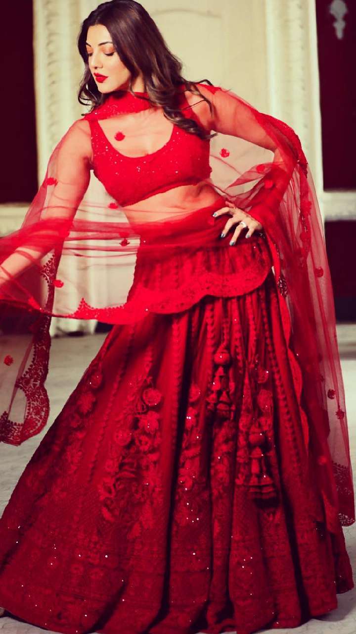 रेड कलर के लहंगे में काजल अग्रवाल हुस्न की मल्लिका लग रहीं हैं। एक्ट्रेस का ये लुक फेस्टिवल के लिए परफेक्ट है।