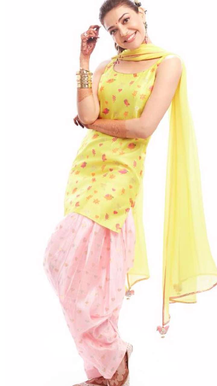 काजल इस पिंक और येलो पटियाला सूट में काफी प्रिटी लग रही हैं। कॉलेज गोइंग यंग गर्ल्स इस लुक से आइडिया ले सकती हैं।