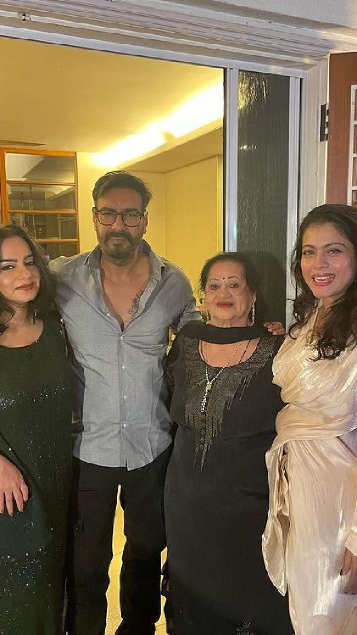 काजोल ने न्यू ईयर पार्टी के खूबसूरत फैमिली फोटो भी फैंस के साथ साझा की हैं, इस में काजोल, अजय और उनकी मां नजर आ रही हैं।