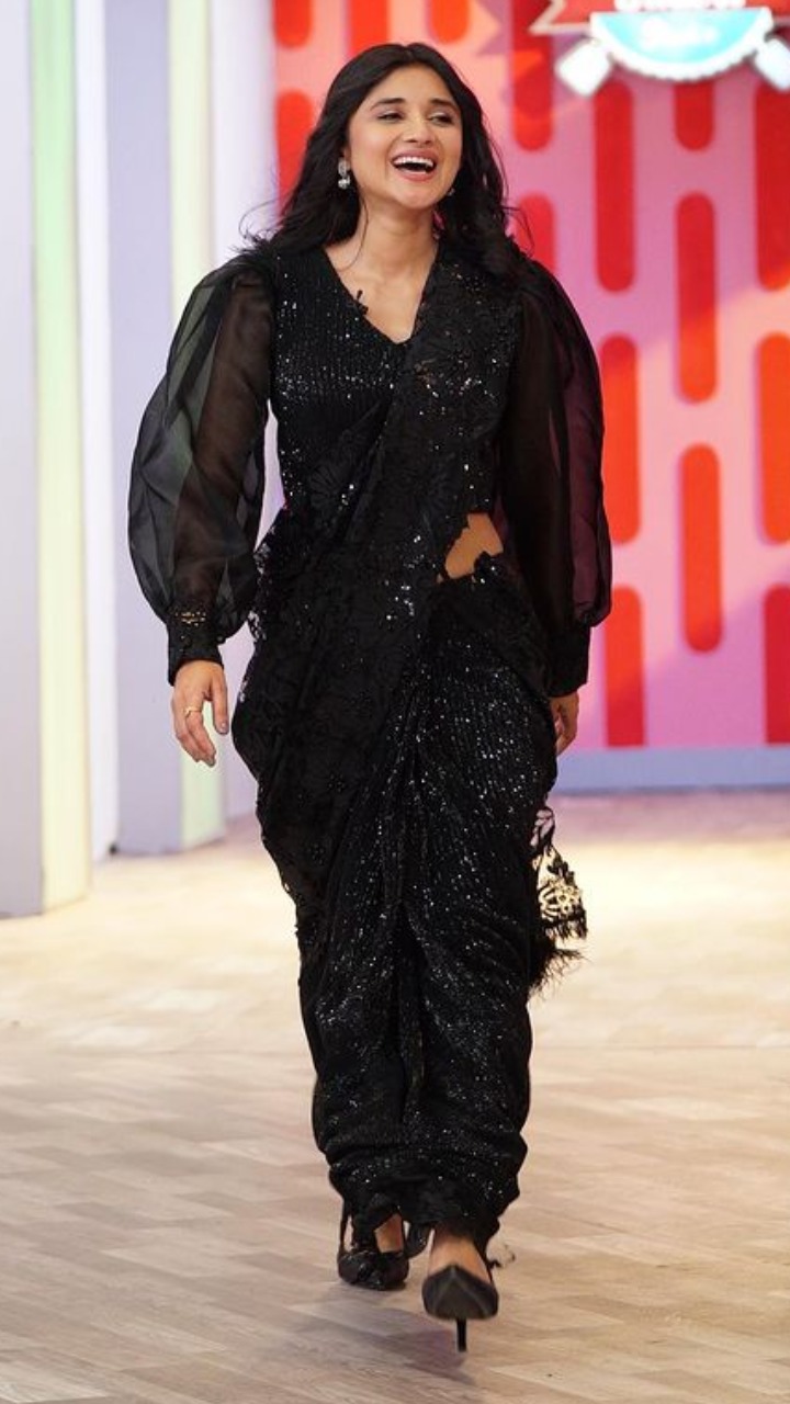 कनिका मान ब्लैक शिमरी साड़ी में बेहद गॉर्जियस दिख रही हैं।