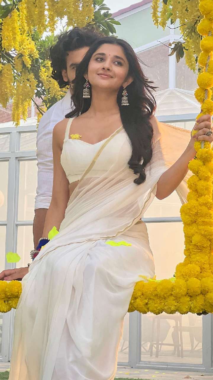 अगर आप सिंपल लुक कैरी करना पसंद करती हैं तो आप क्लासी व्हाइट साड़ी को स्टाइल कर सकती हैं। एक्ट्रेस का ये लुक भी शानदार लग रहा है।