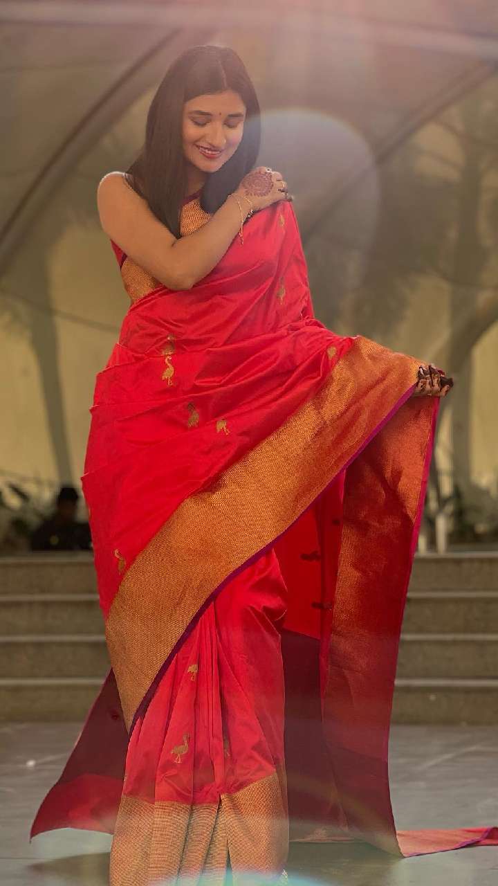 कनिका मान की ये रेड सिल्क साड़ी काफी ज्यादा शानदार होती है। आप अपने लुक को रॉयल बनाने के लिए सिल्क साड़ी कैरी कर सकती हैं।
