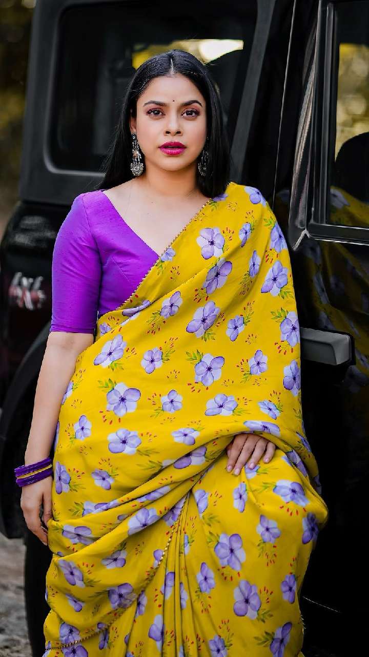 अगर आप सिंपल लुक कैरी करना पसंद करती हैं तो आप सुमोना चक्रवर्ती की तरह ही फ्लावर प्रिंटेड साड़ी को स्टाइल कर सकती हैं।