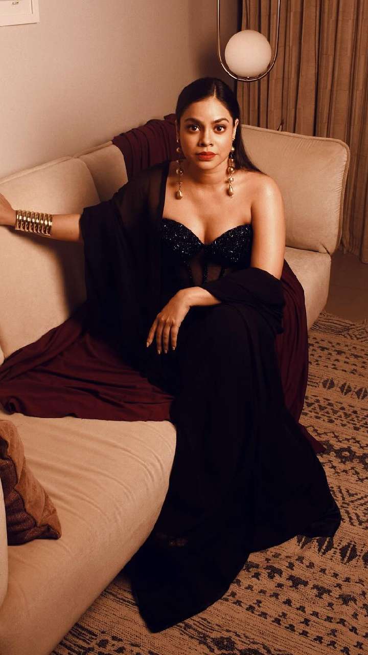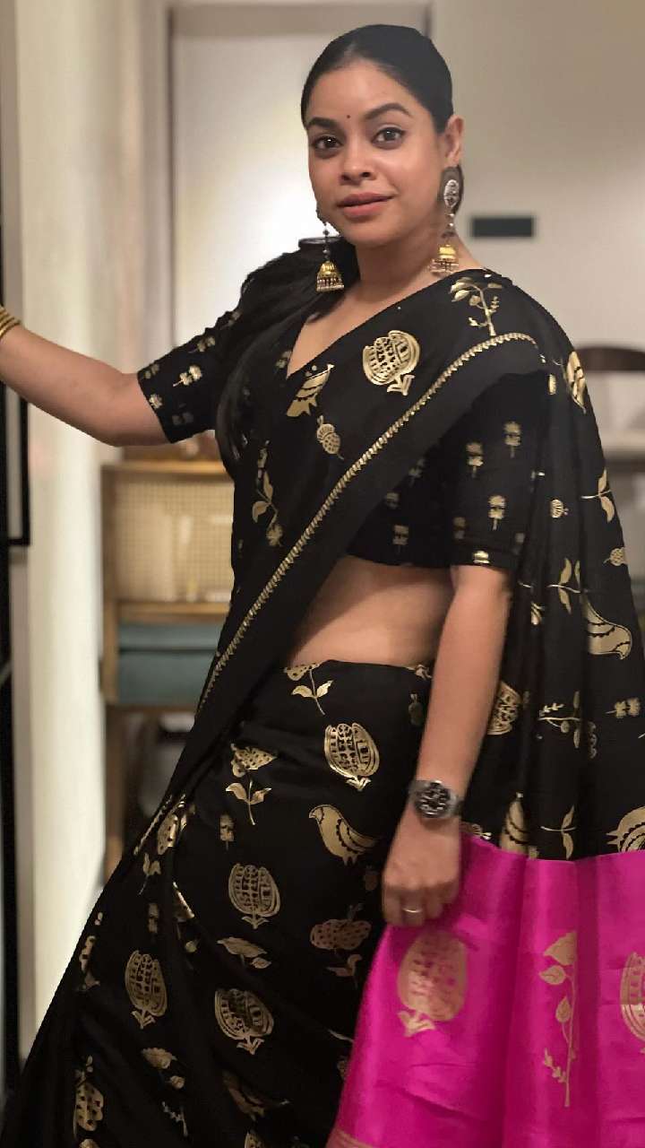 अपने लुक को ट्रेंडी बनाने के लिए आप सुमोना चक्रवर्ती की तरह ही क्रेप साड़ी को स्टाइल कर सकती हैं। क्रेप साड़ी फिलहाल काफी ट्रेंड में चल रही हैं।