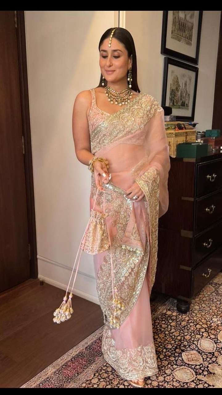 करीना कपूर खान का ये साड़ी लुक शादी के लिए परफेक्ट हैं। आप एक्ट्रेस से ड्रेसिंग के आइडिया ले सकते हैं।