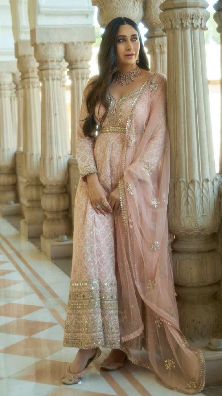 करिश्मा कपूर एथनिक ड्रेस में बला की खूबसूरत लगती हैं। इस तरह की ड्रेस हर मौके पर खास लुक देती है।