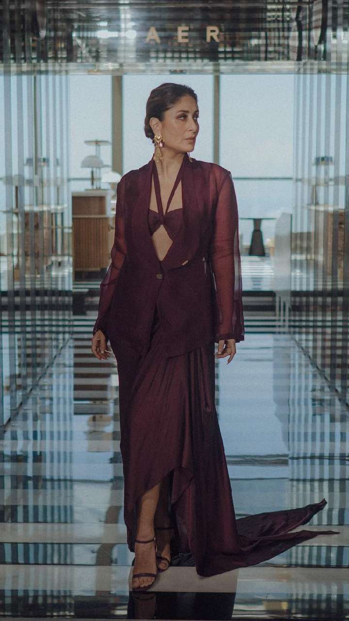 अगर आप अपने दोस्त की फेयरवेल पार्टी के लिए ड्रेस सर्च कर रही हैं, तो करीना कपूर की तरह ऐसा वनपीस ट्राई कर सकती हैं। इसमें उन्होंने ब्लू कलर का डिप नेट वन पीस कैरी किया हुआ है, जिसमें वह काफी बोल्ड नजर आ रही हैं।