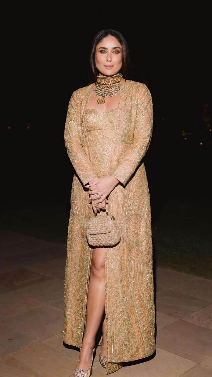 इस फोटो में करीना कपूर गोल्डन कलर के लॉन्ग श्रग आउटफिट में कातिलाना लग रही हैं। अपने लुक के साथ हैंडबैग कैरी किए हुए एक्ट्रेस खूबसूरत लग रही हैं। इस तरह के स्टाइल को आप भी जरूर ट्राई करें।