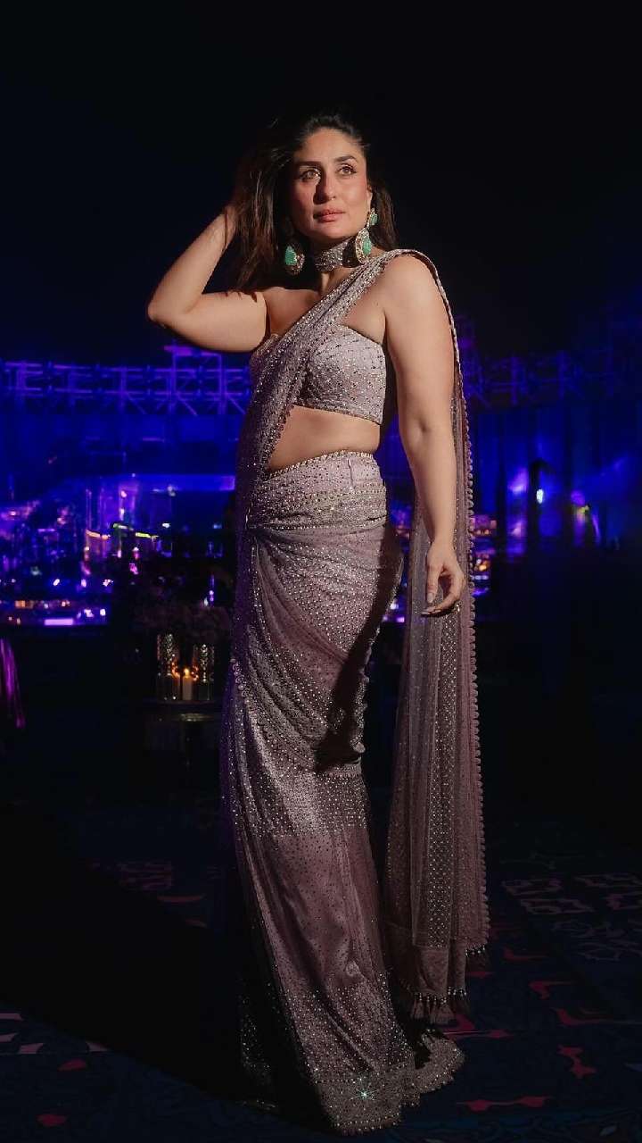 फेयरवेल पार्टी हो या नॉर्मल पार्टी करीना का ये साड़ी लुक भी आपके लिए काफी बेहतरीन है। आप उनके इस शानदार शाइनी साड़ी स्टाइल से इंस्पिरेशन ले सकती हैं।