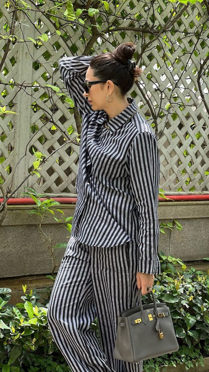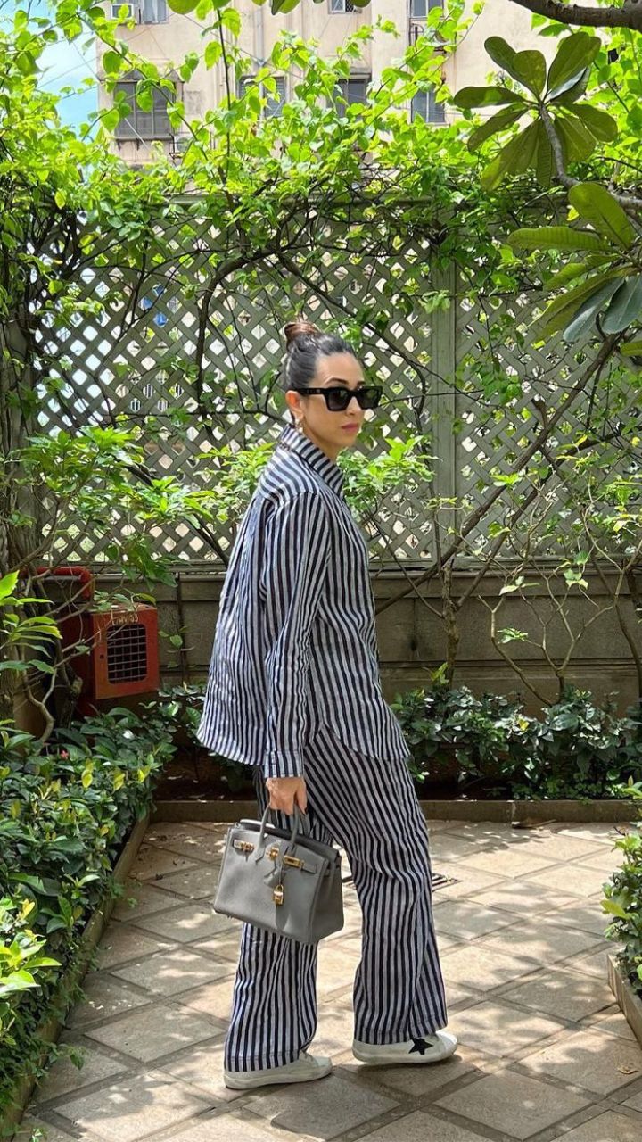 एक्ट्रेस तस्वीर में स्ट्रिप्ड पैंट-शर्ट पहने हाथों में पर्स लिए गार्डन में वॉक करती नजर आ रही हैं।