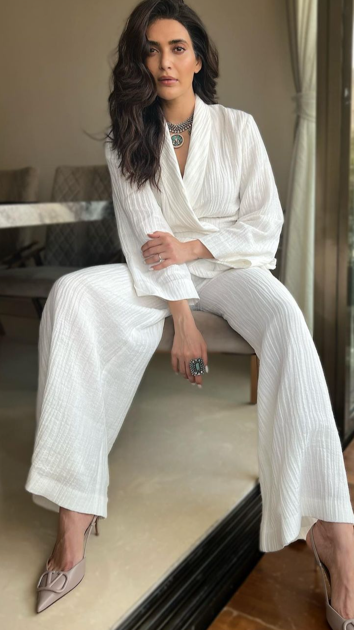करिश्मा ने इस फोटो में बॉटम में व्हाइट पेंट संग रेप अराउंड टॉप कैरी किया हुआ है। फैंस एक्ट्रेस के इस लुक की तारीफ कर रहे हैं।