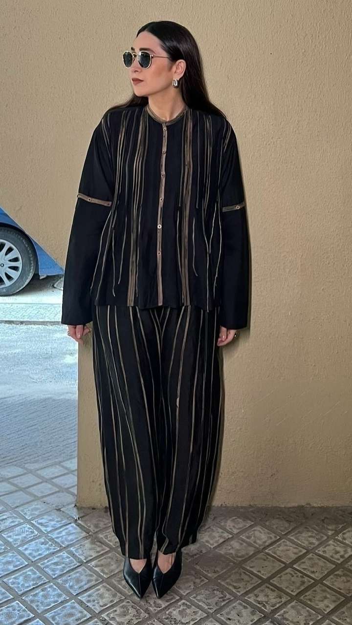 Karisma Kapoor इस डिजाइनर और स्टाइलिश को-ऑर्डर सेट में बेमिसाल लग रही है। आप इसे ऑफिस में बोल्ड मेकअप के साथ पहन सकती हैं।