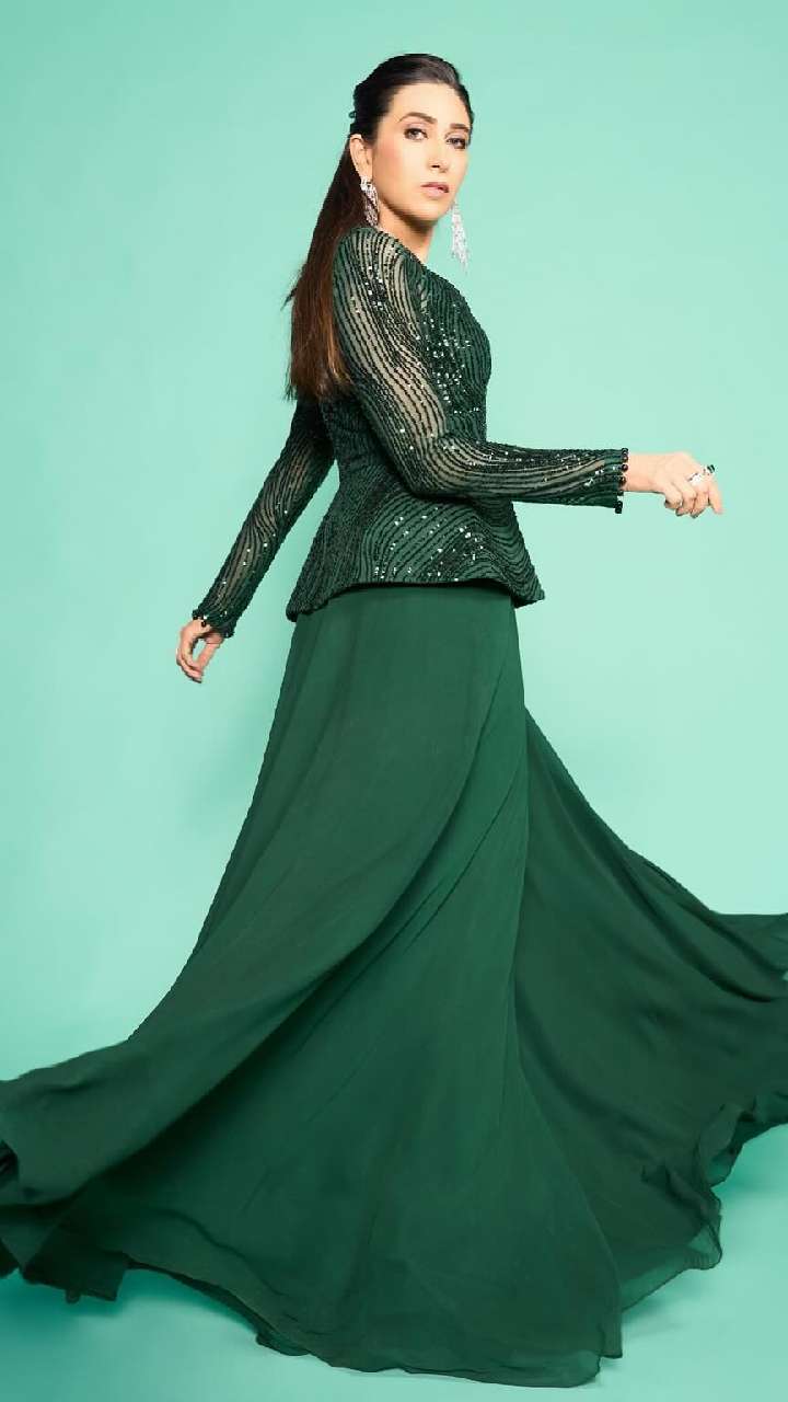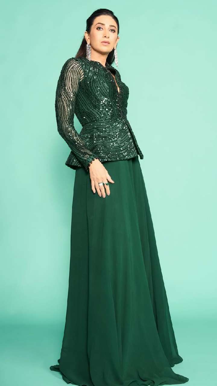 करिश्मा कपूर सोशल मीडिया पर काफी ज्यादा एक्टिव रहती हैं। एक्ट्रेस की ये लेटेस्ट ग्रीन ड्रेस संगीत फंक्शन के लिए परफेक्ट है।