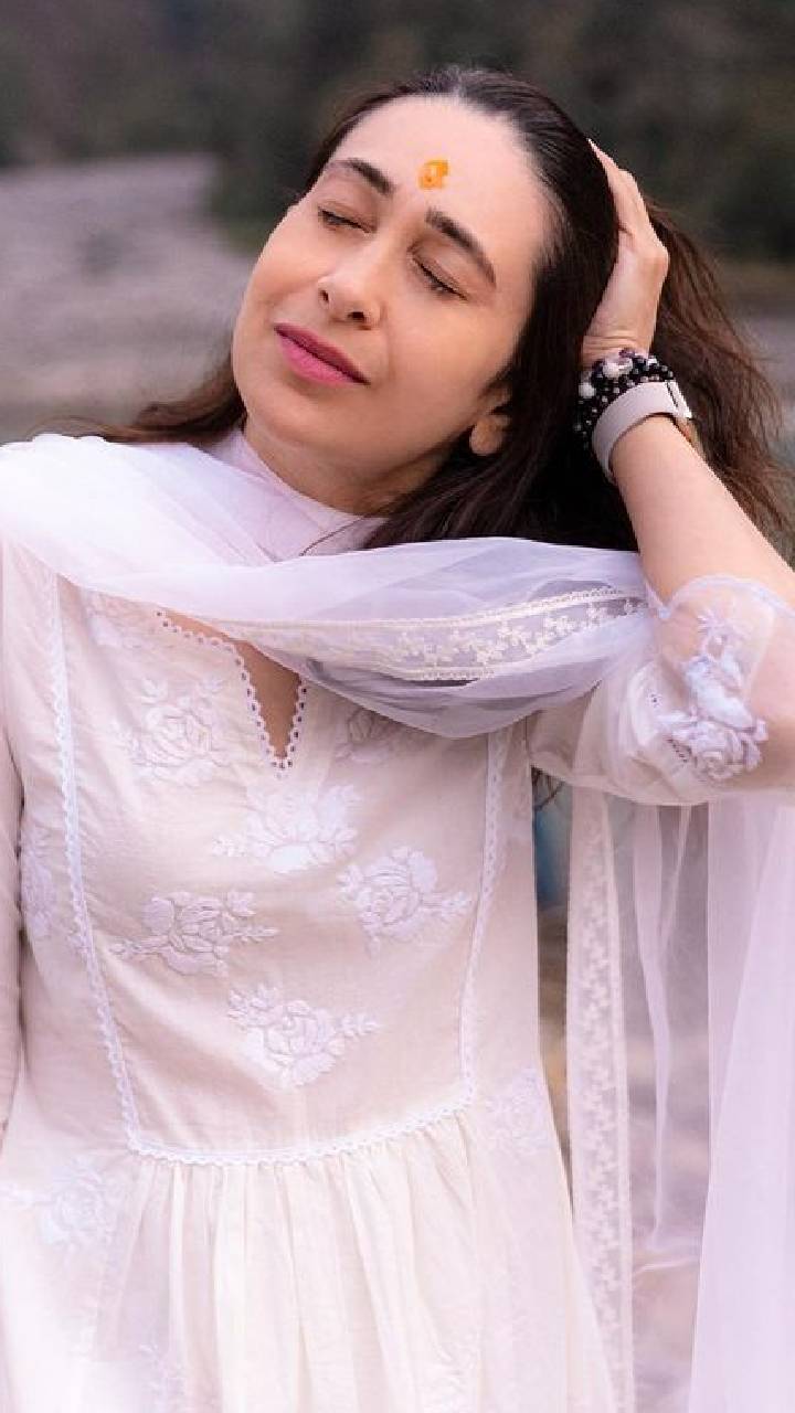 करिश्मा कपूर ने व्हाइट सूट में सादगी भरी तस्वीरें शेयर की हैं।