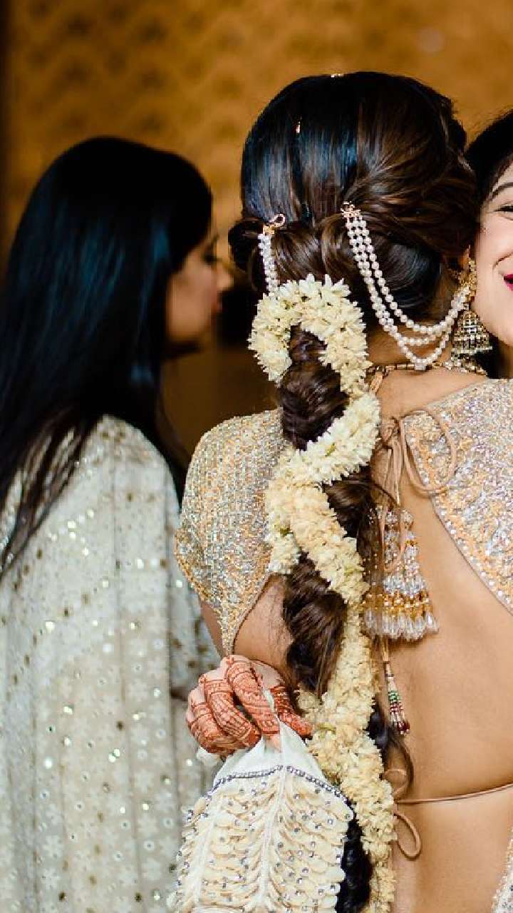 साड़ी और लहंगे के साथ इस तरह के फुल गजरा बन हेयर स्टाइल बेहद अट्रैक्टिव लुक देते हैं।