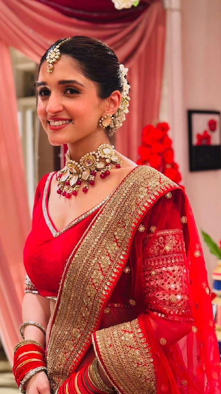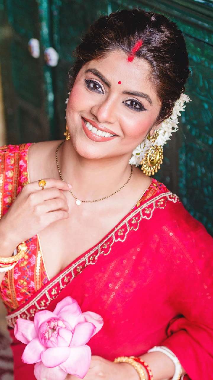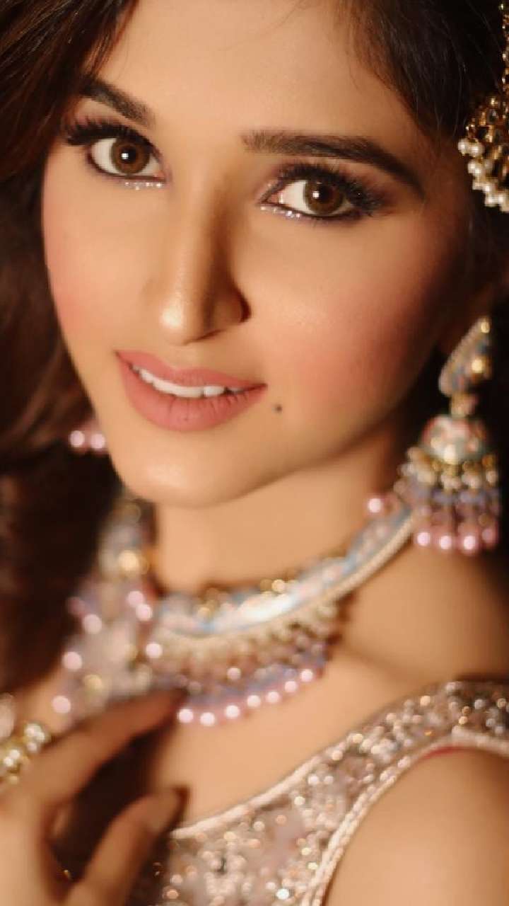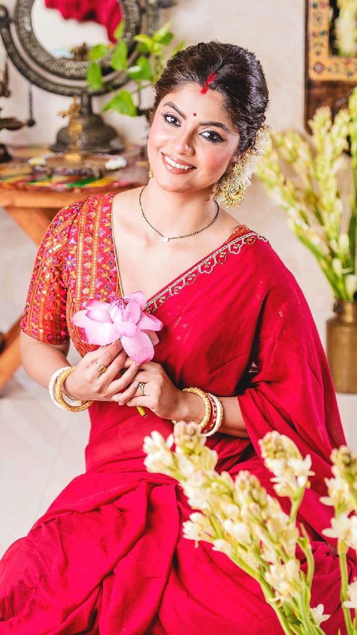 आप इस तरह का एचडी मेकअप टच इस करवाचौथ पर ट्राई कर सकती हैं। इसमें चीक्स पर रेड ब्लश लुक और आंखों के नीचे शिमरी काजल लुक दिया गया है।