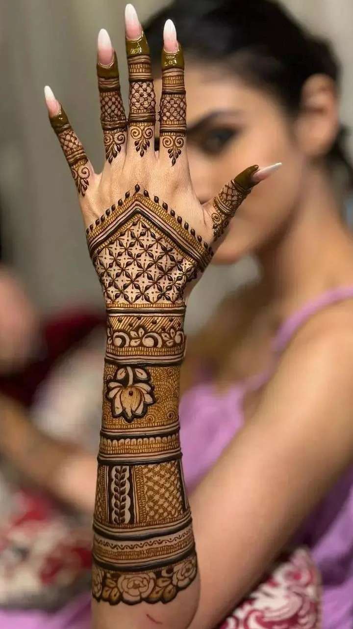 यदि शादी के बाद यह आपका पहला करवा चौथ है तो आपके लिए फुल हैंड मेहंदी बेस्ट रहेगी। ये डिजाइन आपके हाथों का नूर बढ़ा देगा।